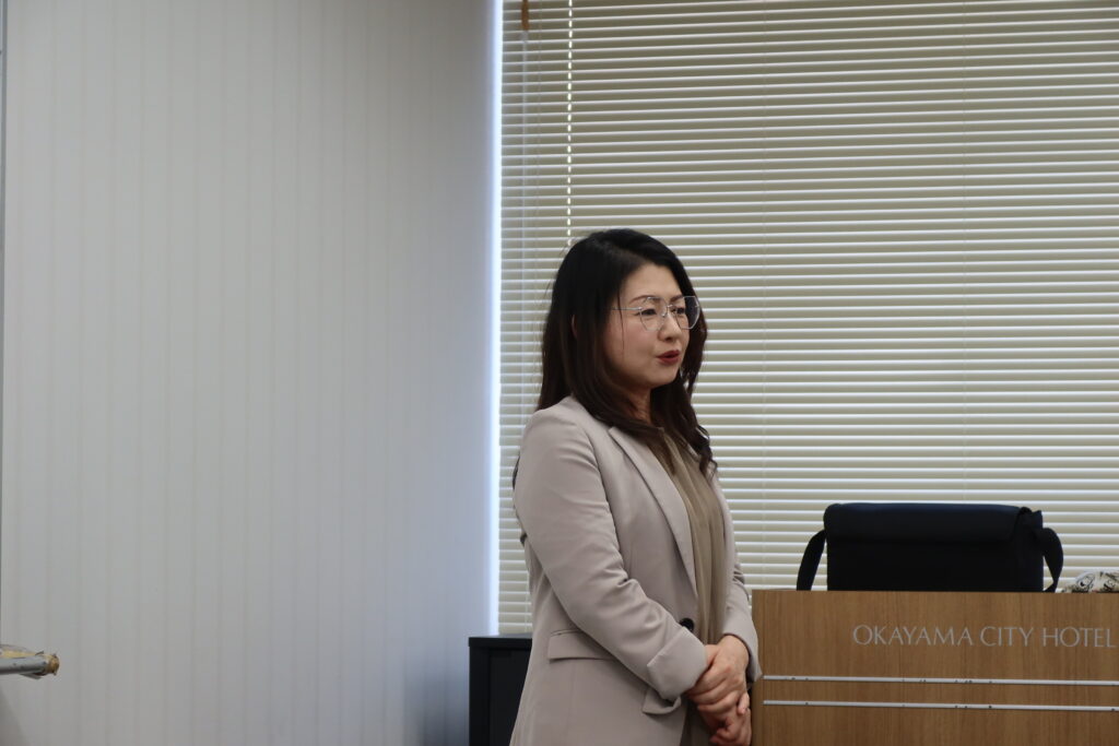 続いて、外部講師として小野瀬順子様をお招きし、壮絶な経験を乗り越えて人生理念を確立し、障害者就労支援やアート事業で数々の成果を生み出してこられた実践と想いについてご講話いただきました。講話後は、今月2回目となるグループディスカッションを実施し、小野瀬様への質疑応答も活発に行われました。